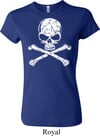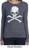 Ladies White Distressed Skull Long Sleeve Shirt