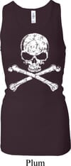 Ladies White Distressed Skull Longer Length Racerback Tank Top