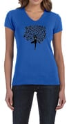 Ladies Yoga Shirt Black Tree Pose V-neck Tee T-Shirt