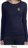 Ladies Yoga Shirt Hippie Sun Patch Pocket Print Long Sleeve Tee