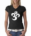 Ladies Yoga Shirt White Distressed OM V-neck Tee T-Shirt