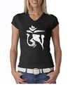 Ladies Yoga Shirt White Tibetan Om V-neck Tee T-shirt