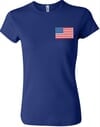 Ladies US American Flag Cotton Tee Shirt - Royal Blue