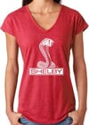 Ladies Ford Mustang Shelby Triblend V-neck - Heather Red