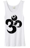 Ladies Yoga Tanktop Black Distressed OM White Organic Tank Top