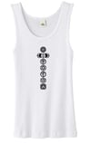 Ladies Yoga Tank Top 7 Chakras Black Print Organic Tanktop - White