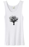 Ladies Yoga Tank Top Black Tree of Life Organic White Tanktop
