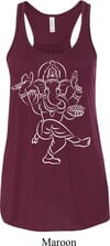 Ladies Yoga Tank Top Sketch Ganesha White Print Flowy Racerback