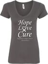 Lung Cancer Tee Hope Love Cure Ladies V-Neck