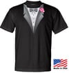 Made in the USA Mens Tuxedo Tee Shirt with Pink Flower - Black