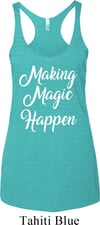 Making Magic Happen White Print Ladies Tri Blend Racerback Tank Top