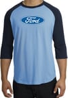 Ford Logo Raglan Shirt - Oval Emblem Adult Carolina Blue/Navy T-Shirt