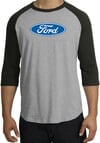 Ford Logo Raglan Shirt - Oval Emblem Adult Heather Grey/Black T-Shirt