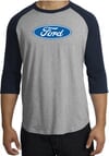 Ford Logo Raglan Shirt - Oval Emblem Adult Heather Grey/Navy T-Shirt