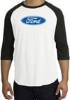 Ford Logo Raglan Shirt - Oval Emblem Adult White/Black T-Shirt