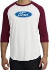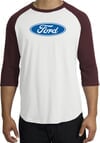 Ford Logo Raglan Shirt - Oval Emblem Adult White/Maroon T-Shirt