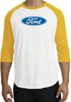 Ford Logo Raglan Shirt - Oval Emblem Adult White/Gold T-Shirt
