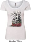 Day of the Dead Candle Skull Ladies Heather White Scoop Neck Shirt