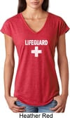 Distressed Lifeguard Ladies Tri Blend V-Neck Shirt