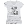 Elvis Presley Shirt Juniors V Neck White Glow Black T-Shirt