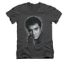 Elvis Presley Shirt Slim Fit V-Neck Grey Portrait Charcoal T-Shirt