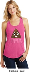Emoji Shit Happens Ladies Dry Wicking Racerback Tank Top
