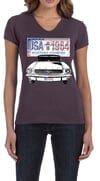 Ford Mustang Ladies Shirt USA 1964 Country V-neck Tee T-Shirt