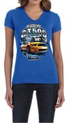 Ford Mustang Ladies Shirt Yellow White GT500 V-neck Tee T-Shirt