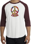 Peace Sign Shirt Funky 70s Peace Raglan Tee White/Maroon