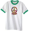 Peace Sign Shirt Funky 70s Peace Ringer Tee White/Kelly Green
