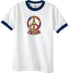 Peace Sign Shirt Funky 70s Peace Ringer Tee Carolina Blue/Navy