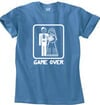 Game Over Pigment Dyed T-shirt Funny Medium Blue Tee - White Print