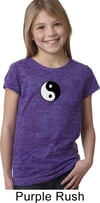Girls Yoga Shirt Yin Yang Patch Small Print Burnout Tee T-Shirt