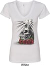 Halloween Day of the Dead Candle Skull Ladies V-Neck Shirt