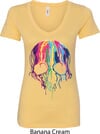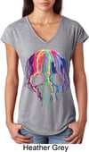 Halloween Melting Skull Ladies Tri Blend V-Neck Shirt