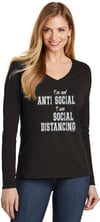 I'm Not Anti Social I am Social Distancing Ladies Long Sleeve V-Neck T-Shirt