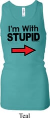 I'm With Stupid Black Print Ladies Longer Length Racerback Tank Top