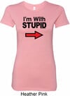 I'm With Stupid Black Print Ladies Longer Length Shirt