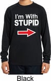 I'm With Stupid White Print Kids Dry Wicking Long Sleeve Shirt