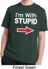 I'm With Stupid White Print Kids Moisture Wicking Shirt