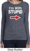 I'm With Stupid White Print Ladies Long Sleeve Shirt