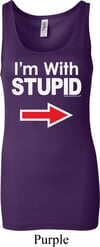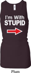 I'm With Stupid White Print Ladies Longer Length Tank Top