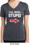 I'm With Stupid White Print Ladies Moisture Wicking V-neck Shirt