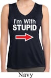 I'm With Stupid White Print Ladies Sleeveless Moisture Wicking Shirt