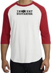 INNOCENT BYSTANDER BLACK Funny Adult Raglan T-shirt - White/Red