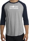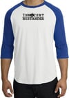 INNOCENT BYSTANDER BLACK Funny Adult Raglan T-shirt - White/Royal