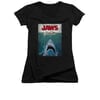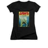 Jaws Shirt Juniors V Neck Lined Poster Black T-Shirt