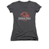 Jurassic Park Shirt Juniors V Neck Faded Logo Charcoal Tee T-Shirt