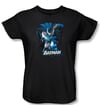 Justice League Ladies Shirt Batman Blue and Gray Superheroes Black Tee