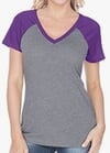 Kavio Women Contrast V Neck Raglan Short Sleeve Tee